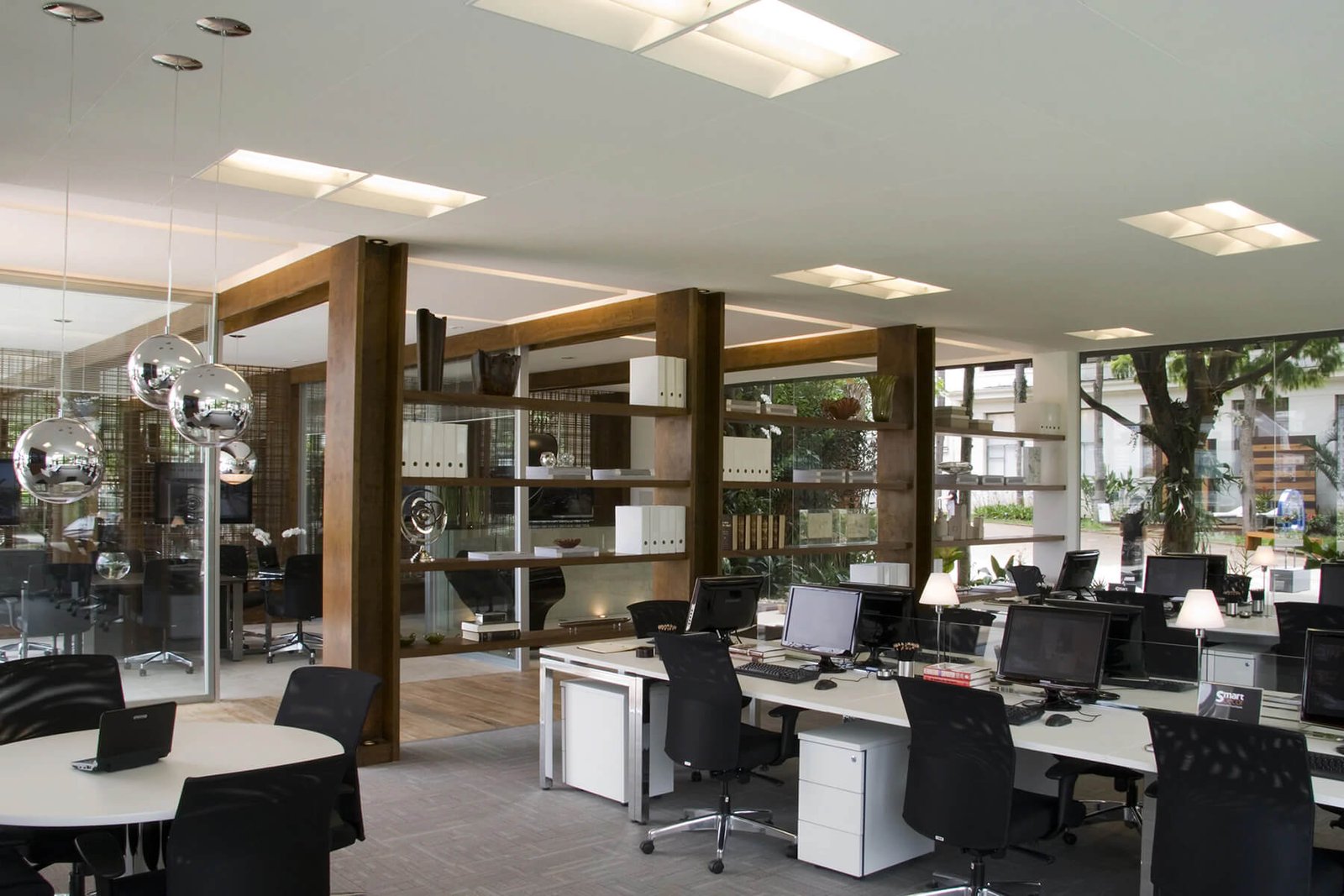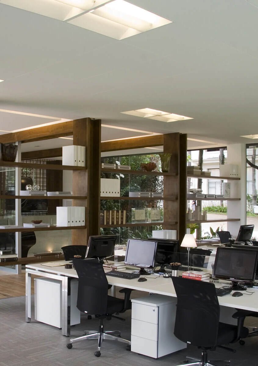 Focused on business consulting, the client company had its entire program organized within a 350m² area, in which a central circulation served as a distribution axis for the rooms, strategically positioning the common meeting spaces and the boardroom, with guaranteed visibility and privacy.